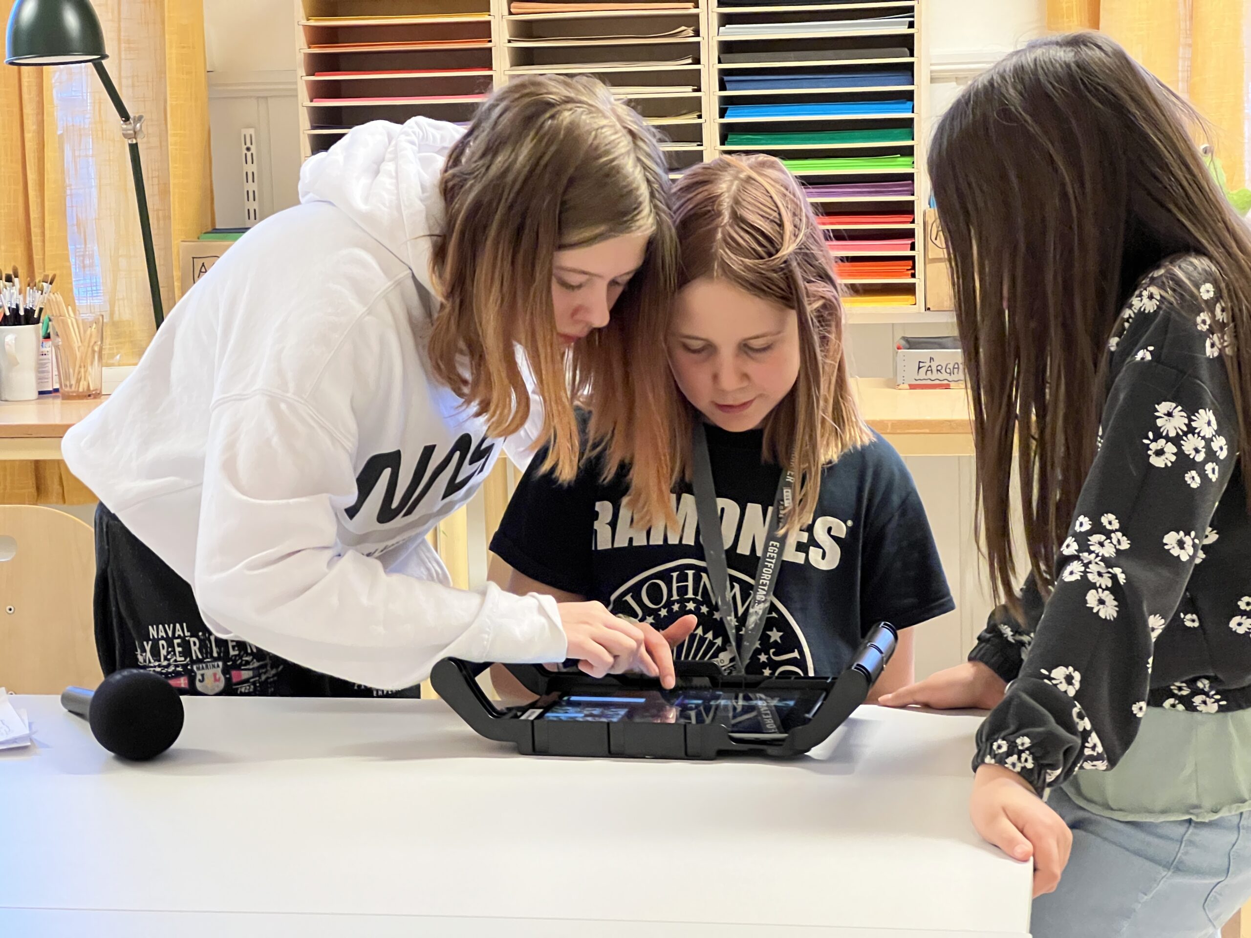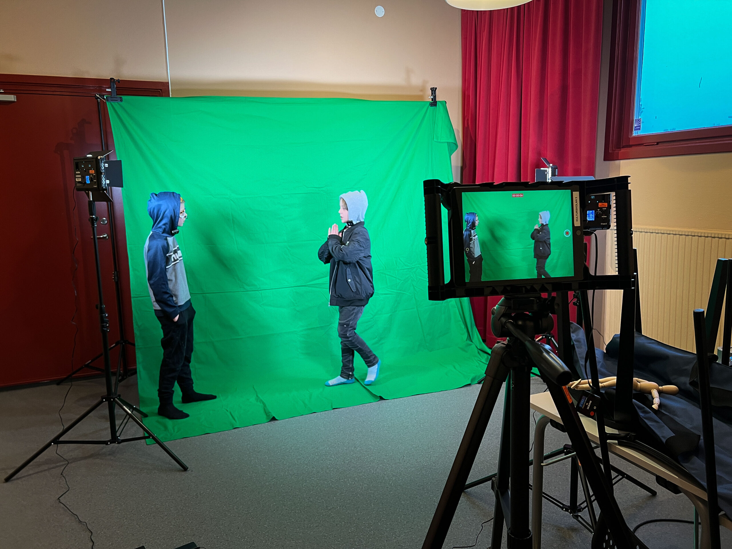 Idag använde vi greenscreen i film-gruppen på Kulturskolan. Det var trångt om saligheten men så roligt! Eleverna placerade sig där de hade lust att vara i sina filmer. En kille simmade bland citroner i bubbelvatten, en tjej flög som en fjäril, några gjorde Lilla Aktuellt och en kille gick vilse i stora mörka skogen. Gör såhär om du vill prova: